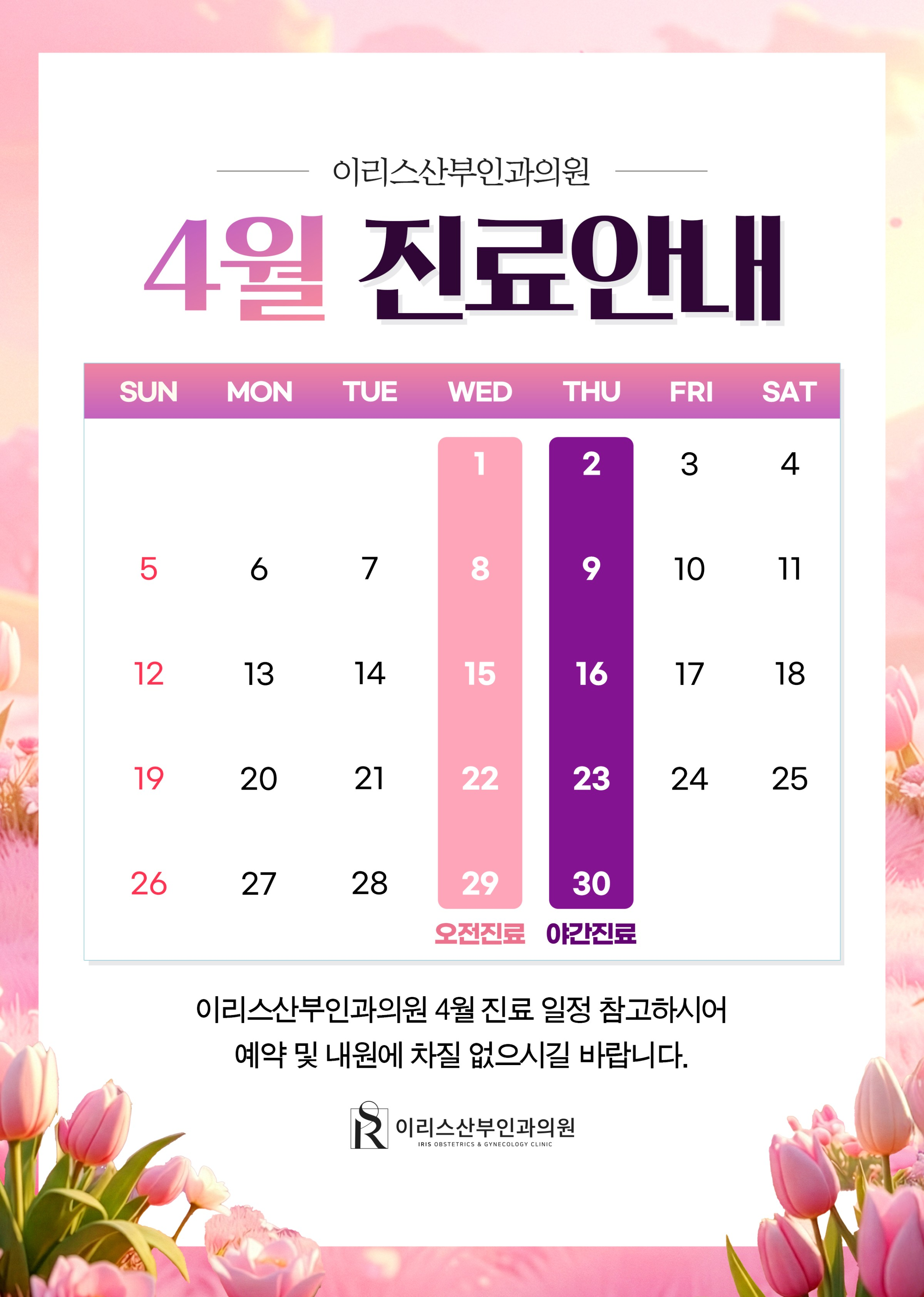 진료 안내 상세보기 월·화·금 09:00 ~ 18:00 수요일 09:00 ~ 12:30 목요일 (야간진료) 09:00 ~ 20:00 토요일 (점심시간 없음) 09:00 ~ 14:00 점심시간 12:30 ~ 14:00 ※ 일요일과 공휴일은 휴진입니다.